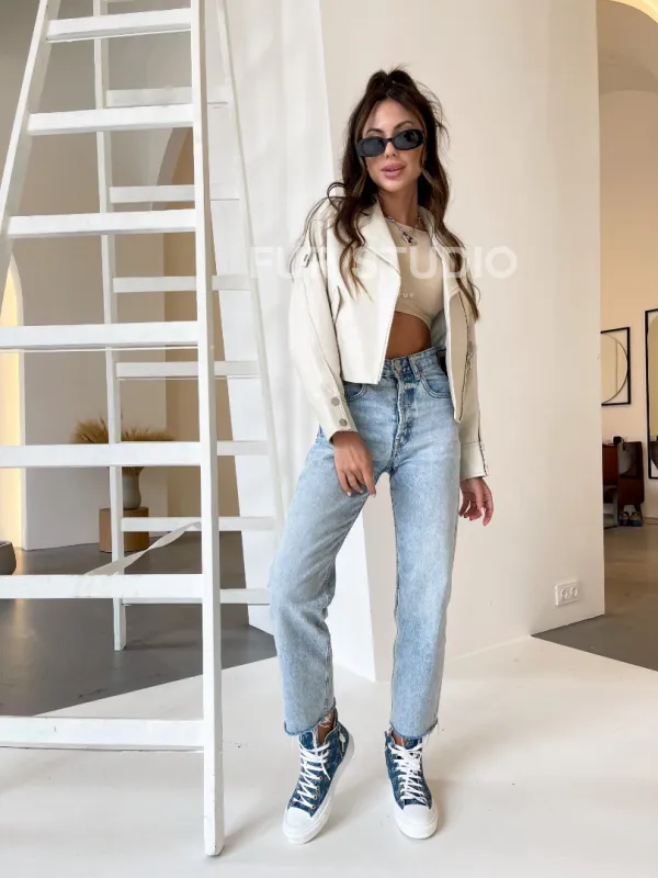 Декоративные заклепки придают верхней одежде особый шарм. Качество материала порадует хозяйку, и она будет носить вещь долгие годы. Модель прекрасно сочетается с базовым гардеробом, подойдет под вечерний look. При необходимости фермуар можно застегнуть и куртка согреет вас, если станет холодно. Белый цвет выгодно подчеркнет оттенок кожи и глаз владелицы. Купить белую короткую кожаную куртку могут женщины, которые любят выглядеть стильно и дорого.