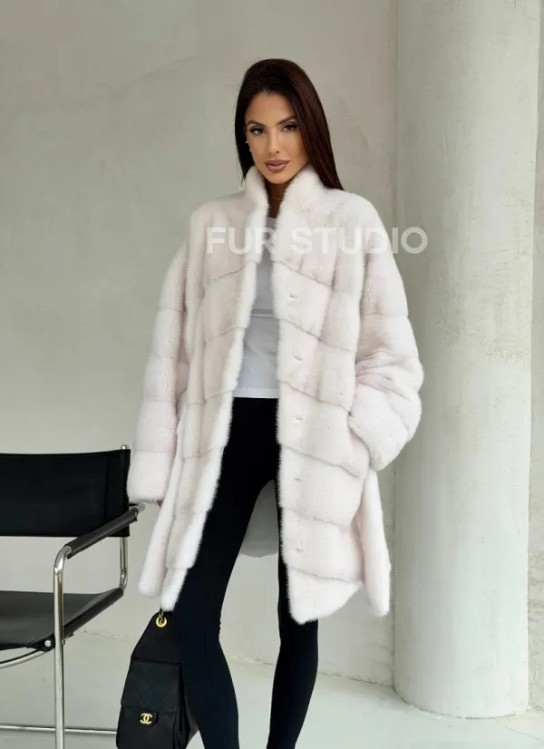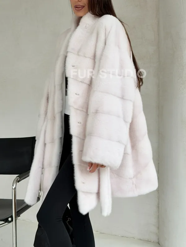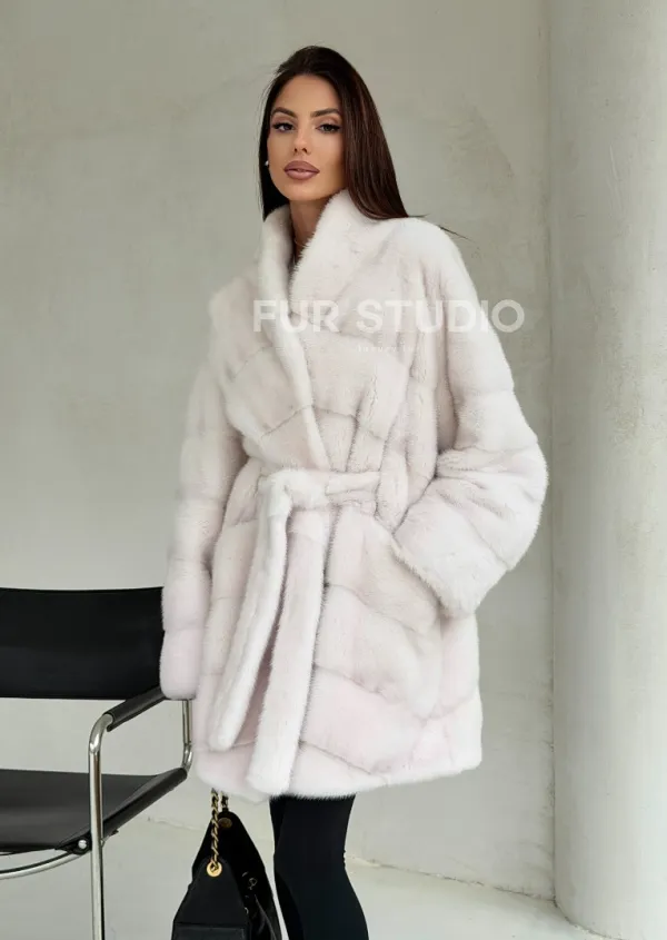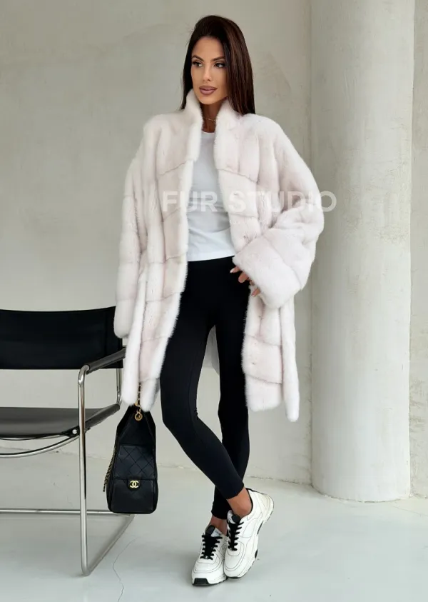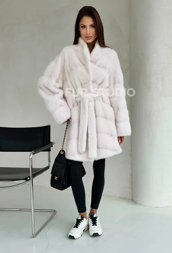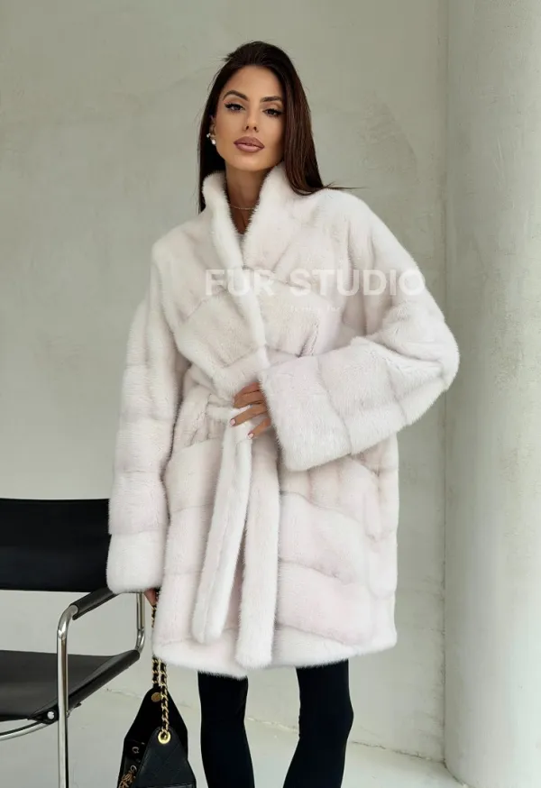 Белая шуба-кимоно, мех норка 102688