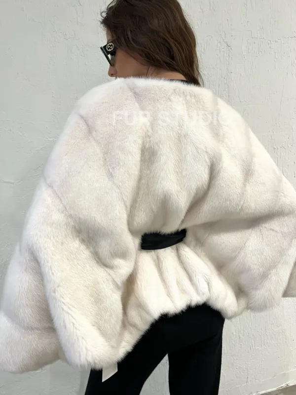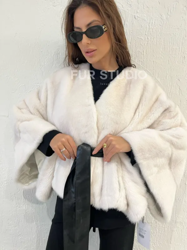 Мех данной шубы аукционная норка , цвет белый. Предлагается в размерах от 38 до 58 (oversize). Длина модели 50-55 см, что выгодно подчеркивает фигуру девушек. Эта модель идеально подойдет для девушек и женщин, предпочитающих роскошные натуральные меха.