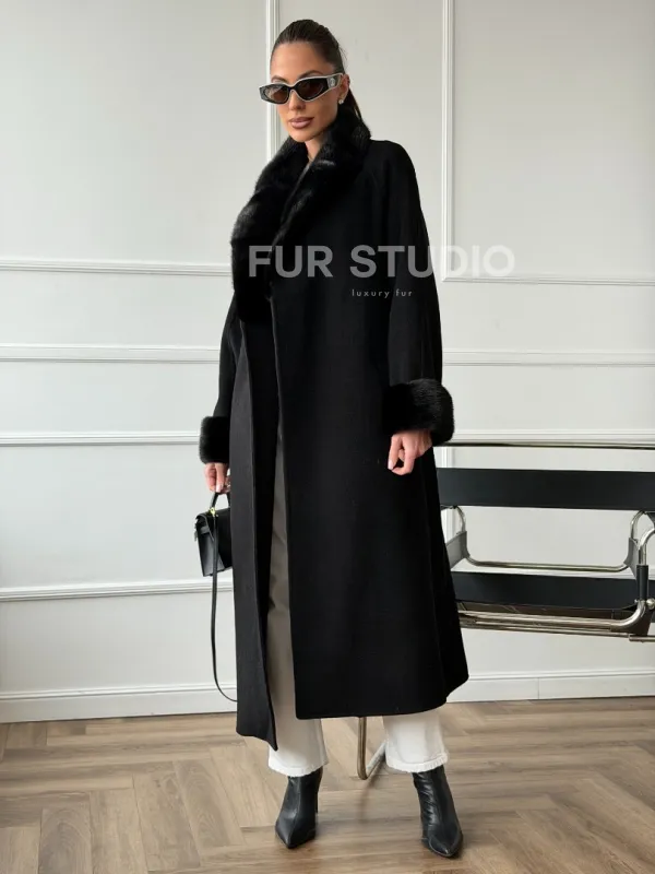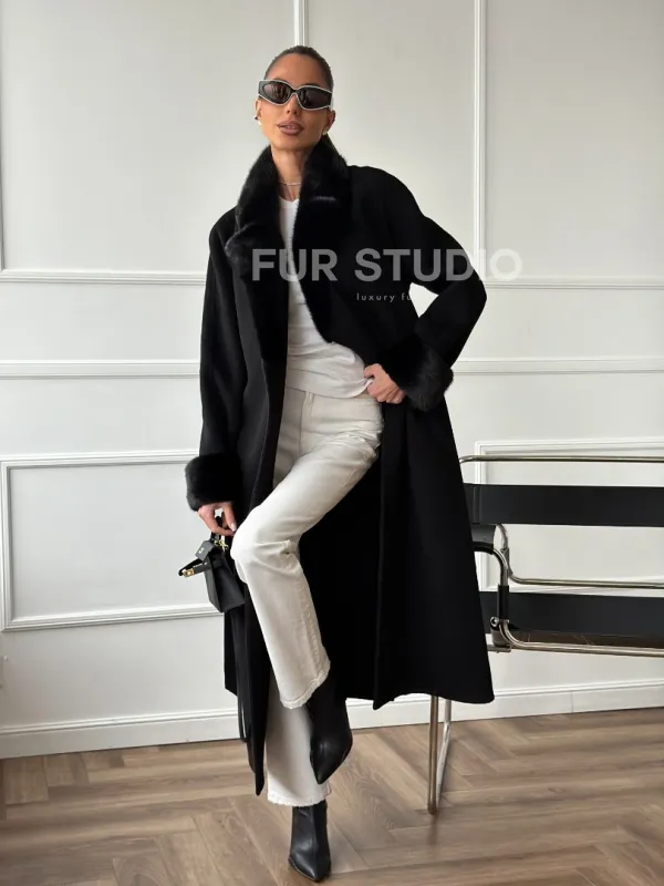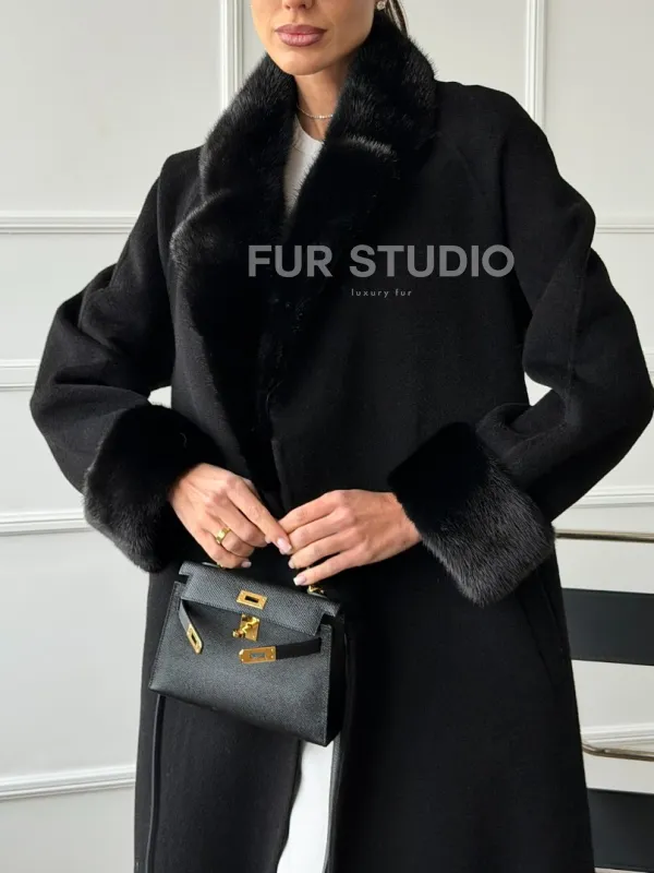 Черное пальто с мехом норки 102666