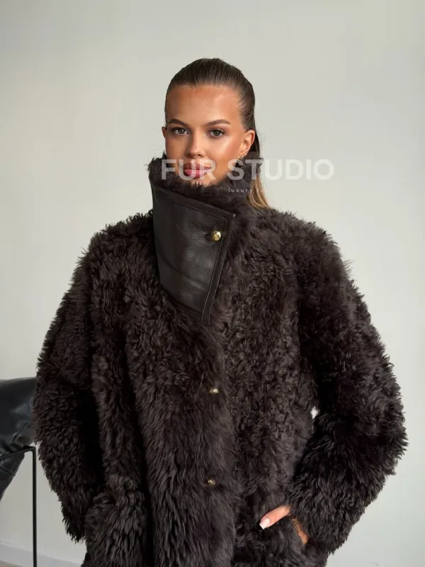 Дублёнка коричневая из овчины - тиградо 102603