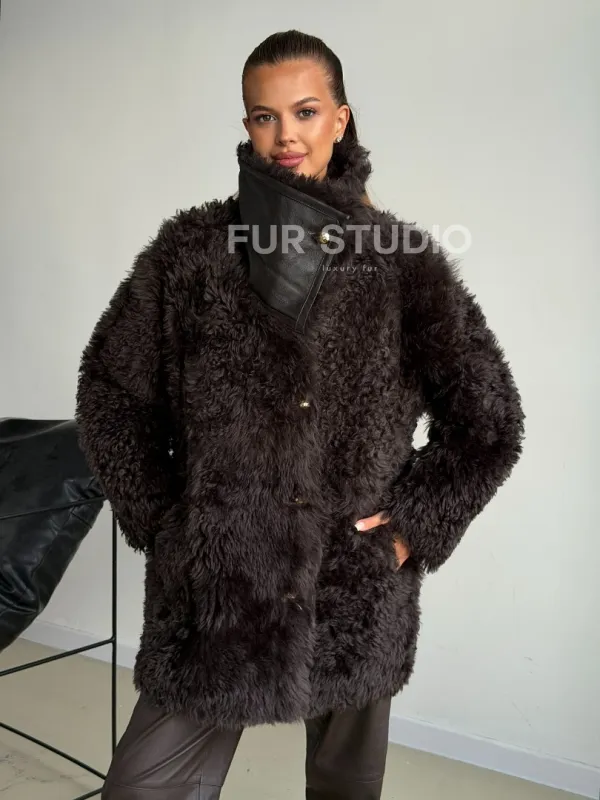Дублёнка коричневая из овчины - тиградо доступна для покупки в нашем шоуруме Furs Studio в , а также предлагается удобная доставка во все города России. Обогатите свой гардероб этой дубленкой, которая прослужит вам многие годы, добавив немного роскоши в ваш повседневный образ.