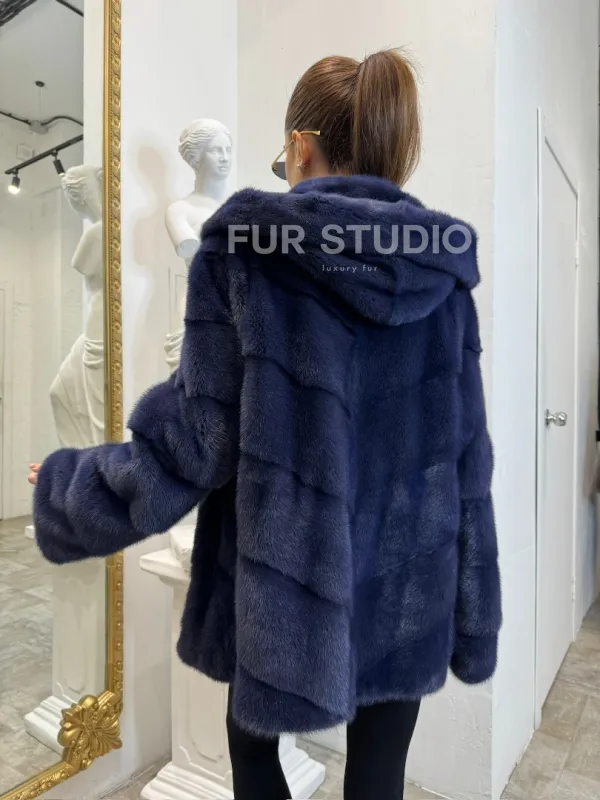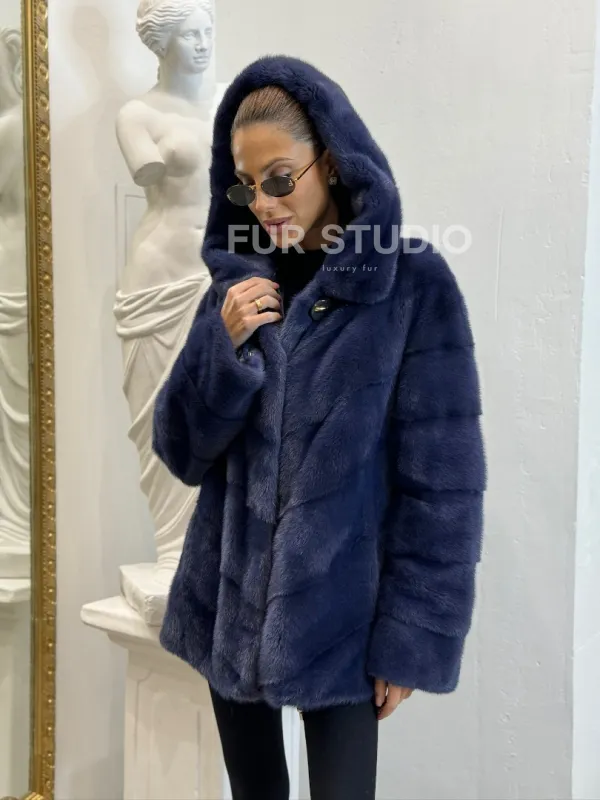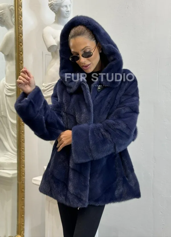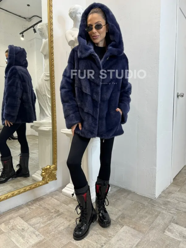 Короткая шуба из импортной норки с капюшоном 100124