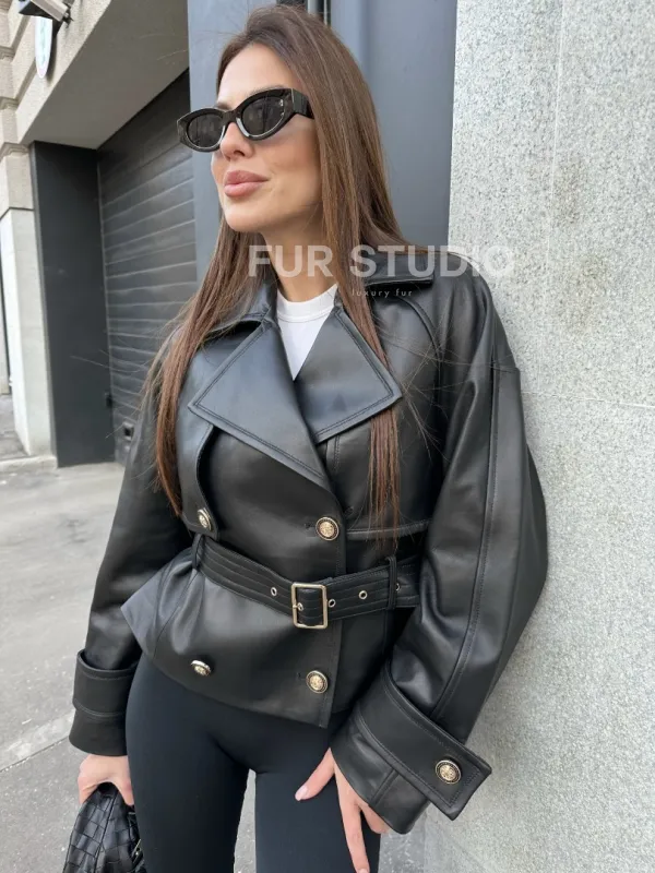 Куртка из кожи черного цвета доступна для покупки в нашем шоуруме Furs Studio в , где также предоставляется удобная доставка во все города России.