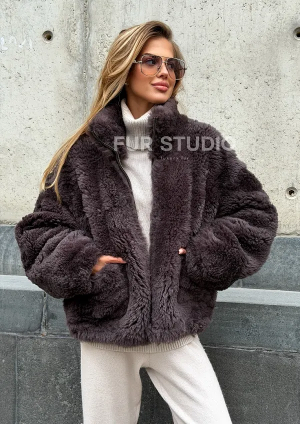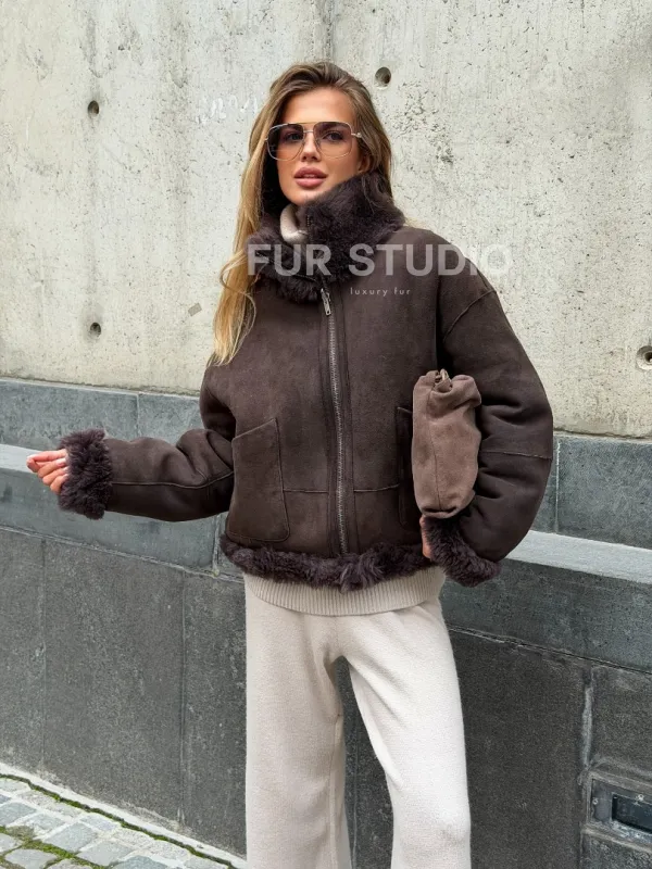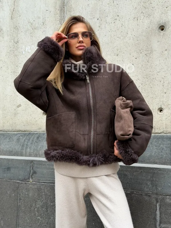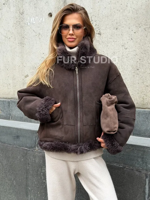 Натуральная двухсторонняя дубленка - бомбер 102543
