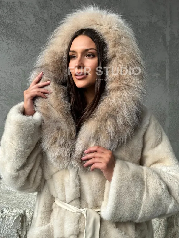Норка шуба паркет с капюшоном рысь 102507