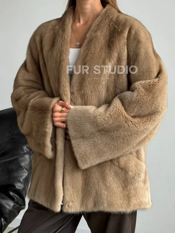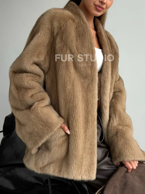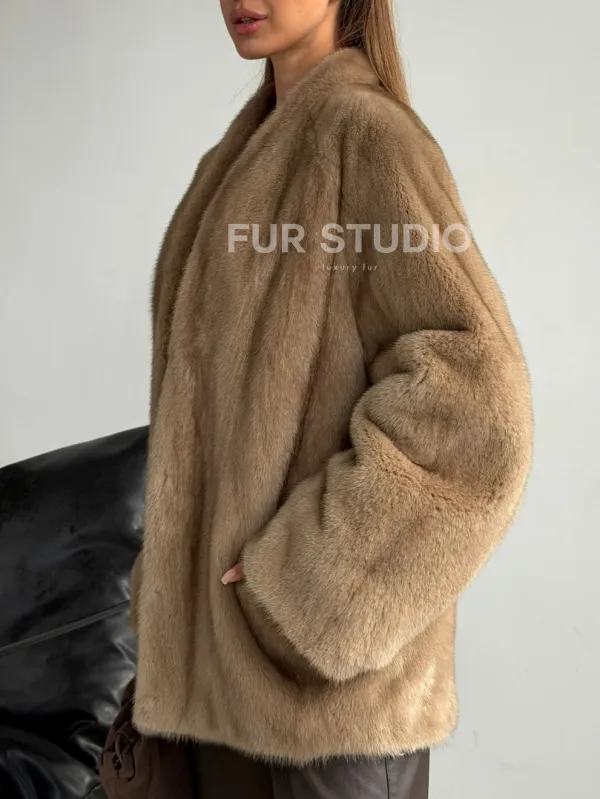Норковый полушубок V-образный воротник 102590