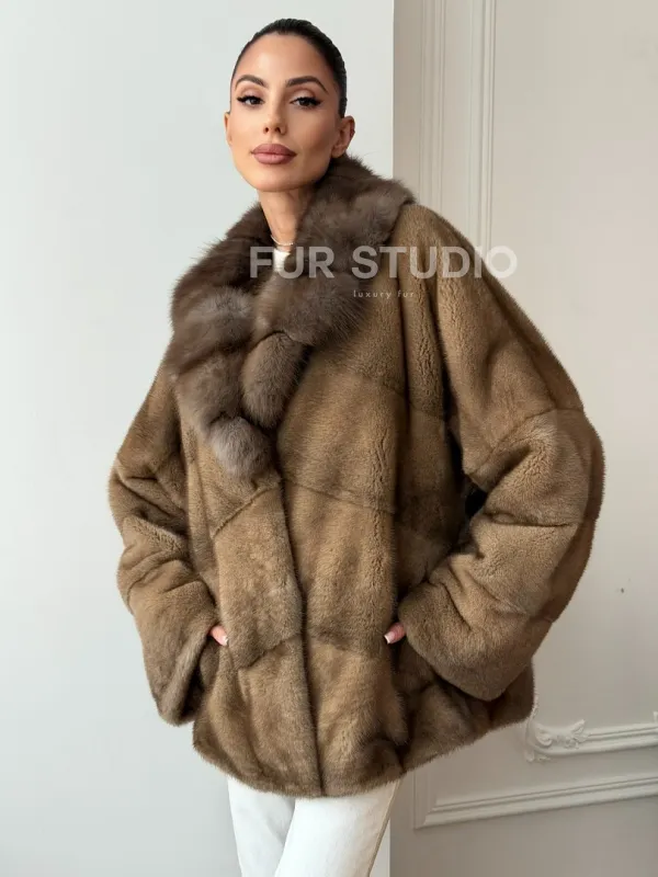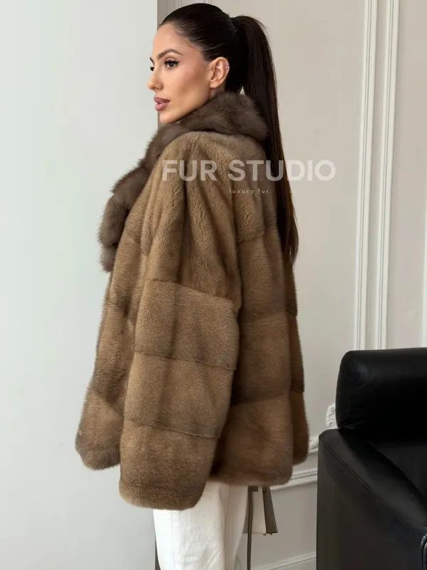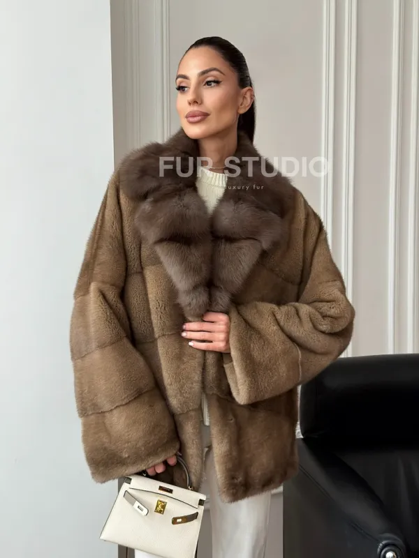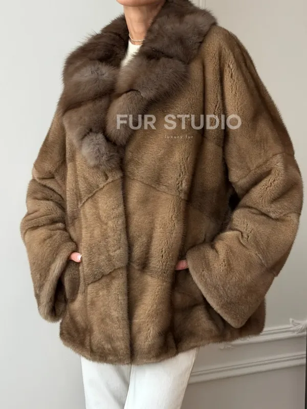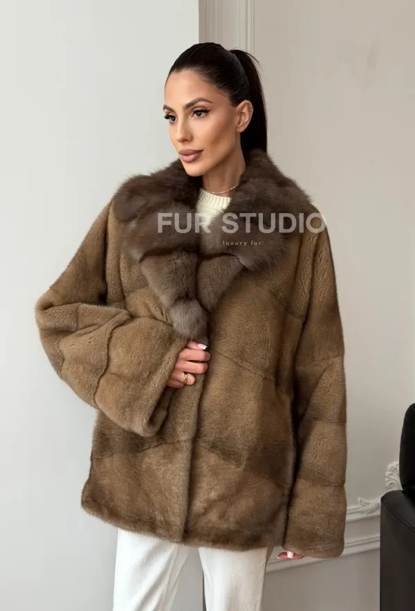 Норковый полушубок - воротник куница 102709