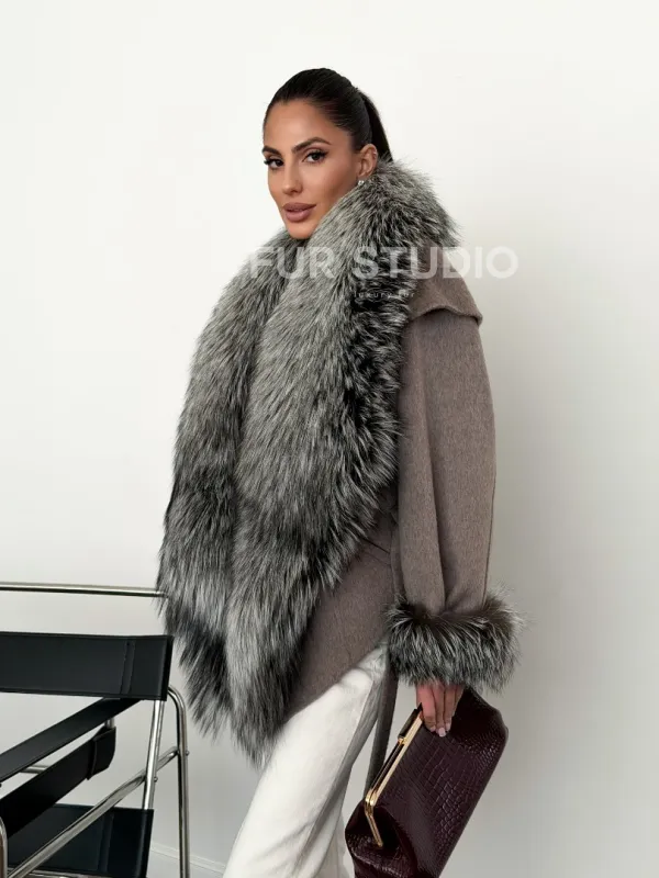 Полупальто с мехом чернобурки 102616