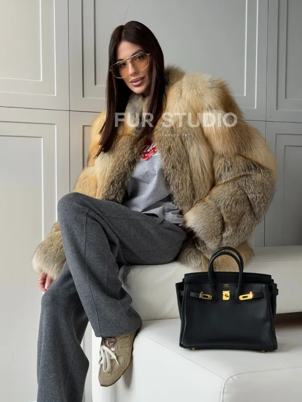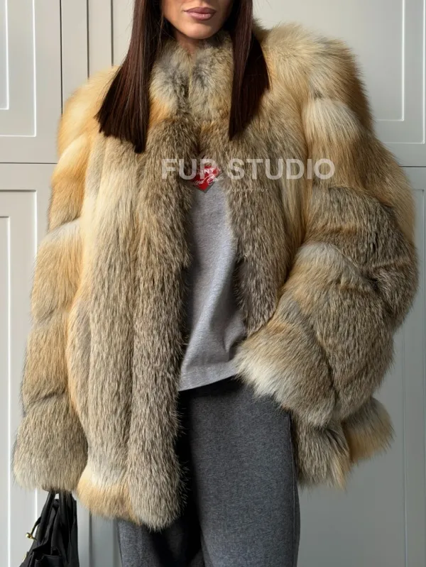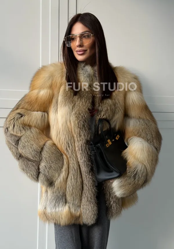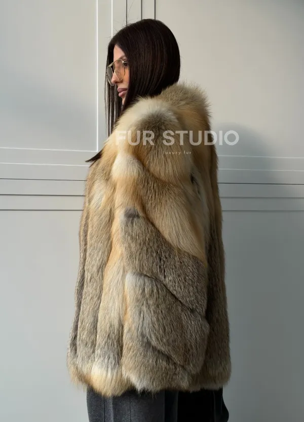 Мех данной шубы лиса, цвет рыжий. Предлагается в размерах от 40 до 48. Длина модели 70-75 см, что выгодно подчеркивает фигуру девушек. Эта модель идеально подойдет для девушек и женщин, предпочитающих роскошные натуральные меха.
