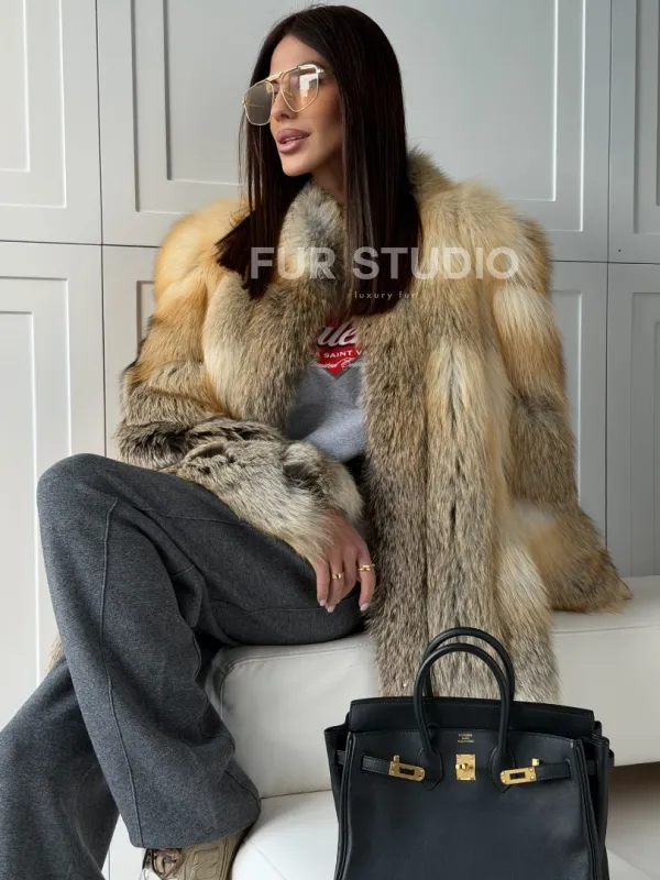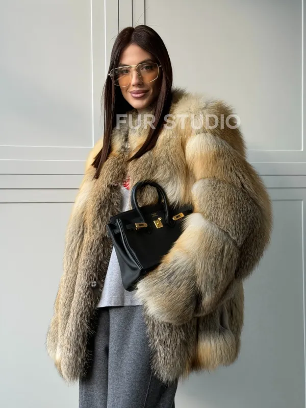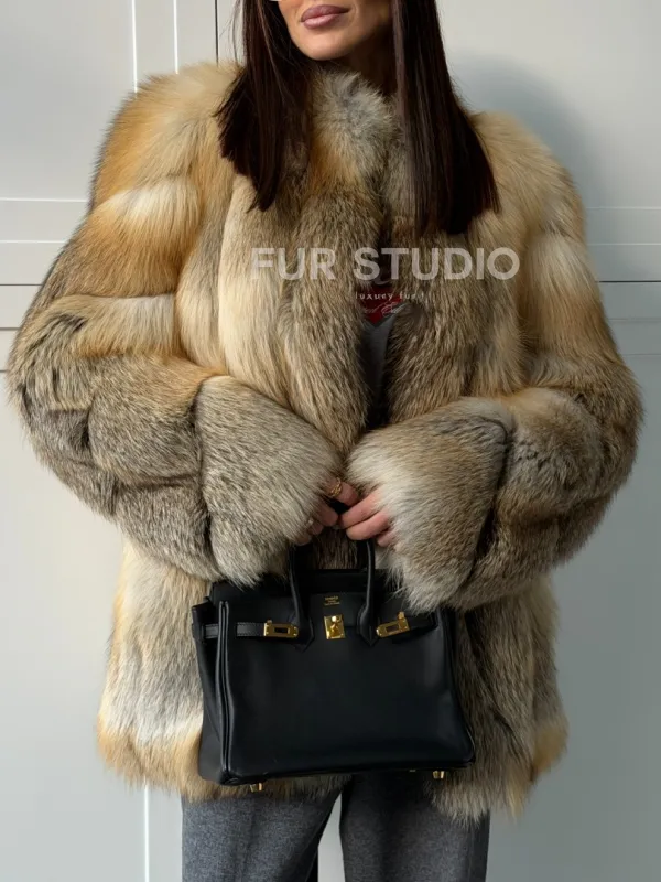 Полушубок из лисы - рукава косички 102836