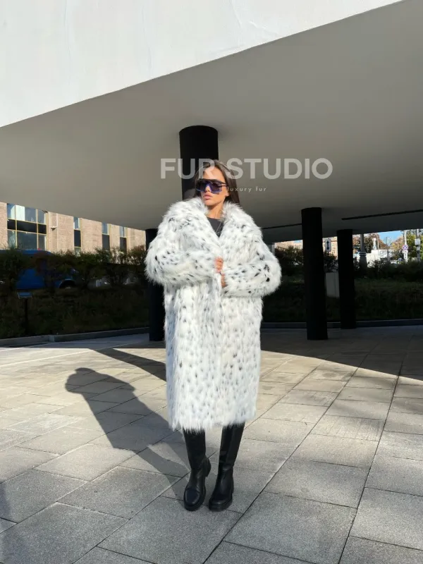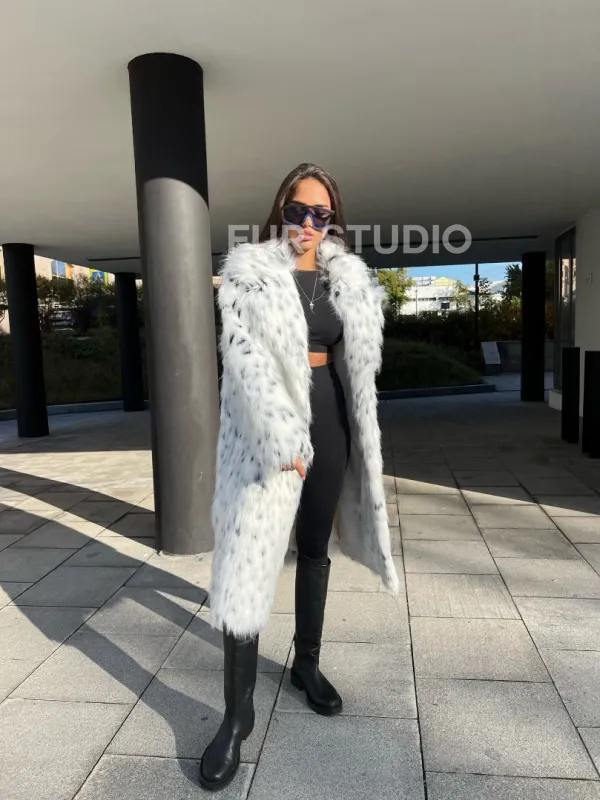 Оригинальный воротник позаботится о тепле шеи в холода и подчеркнет ее изгибы. Широкие рукава делают акцент на изяществе кистей. Модель сочетается с базовым гардеробом, подойдет под вечерний наряд. Добавьте к образу брендовую сумочку и стильную обувь – вы будете выглядеть стильно и лаконично. Купить шубу из экомеха под рысь могут все, кто мечтает о меховом изделии в своем гардеробе.