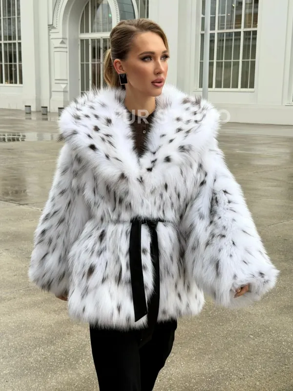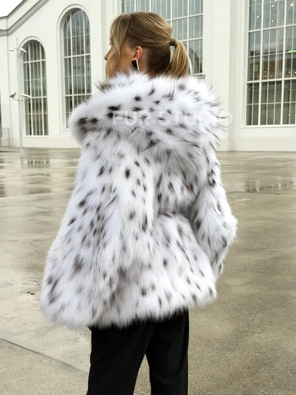 Шуба из лисьего меха под рысь с капюшоном 102680