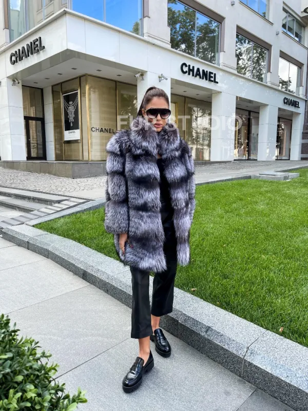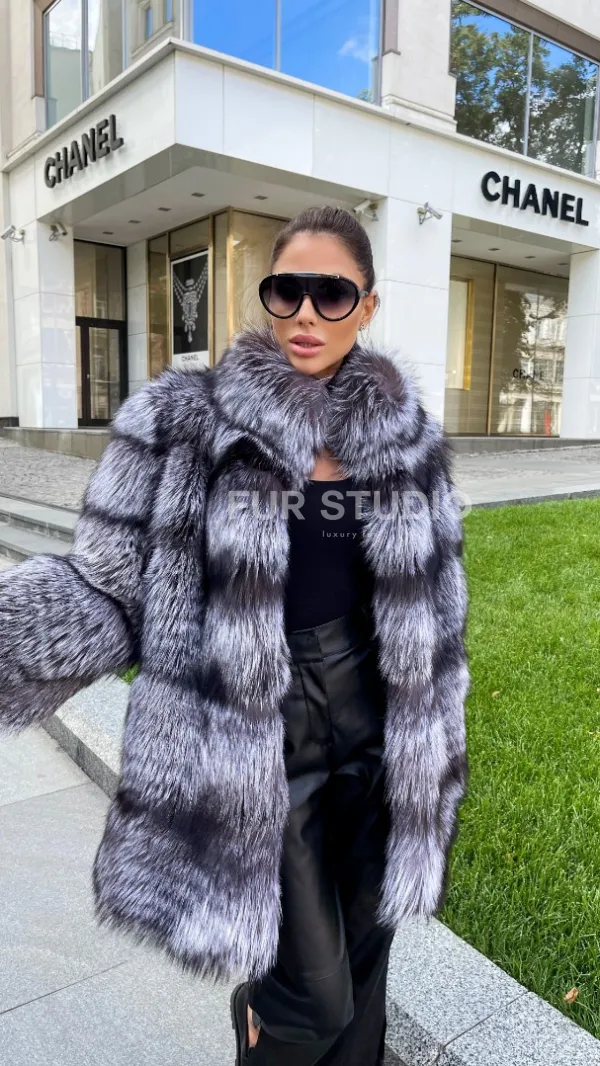 Шуба из меха чернобурой лисы - отличный выбор женщин, которые любят выглядеть стильно в любое время года. Мех смотрится роскошно и дорого. Необычная расцветка подчеркнет цвет волос и глаз владелицы. В шубе будет комфортно даже в холодную зиму. Прямой крой зрительно увеличит рост. Широкие манжеты делают акцент на тонкости кистей.