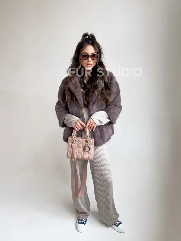 Мех данной шубы аукционная норка, цвет розовый. Предлагается в размерах от 40 до 48. Длина модели 55-60 см, что выгодно подчеркивает фигуру девушек. Эта модель идеально подойдет для девушек и женщин, предпочитающих роскошные натуральные меха.