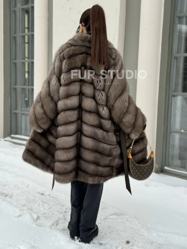 Примерять и купить шубу миди из натурального меха соболя в цвете тортор вы можете в нашем шоуруме студии меха Fur Studio в Москве или у себя дома. Для дистанционного заказа понадобятся мерки, по которым шубу подгонят под особенности фигуры.