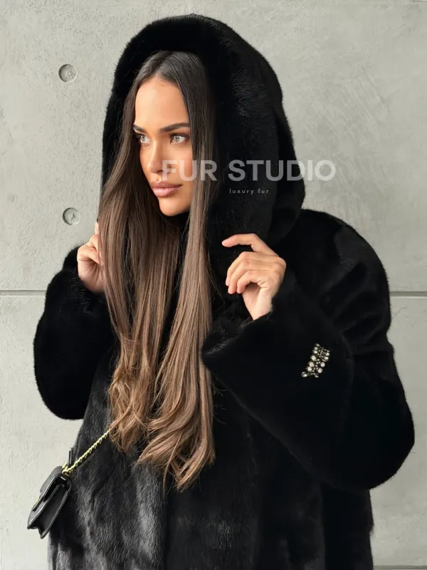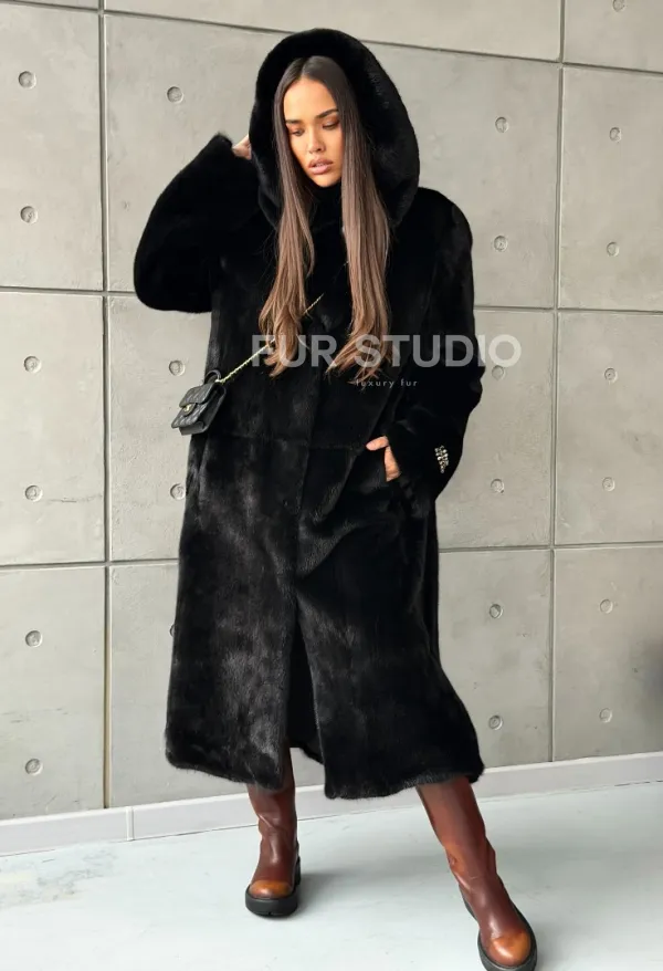 Шуба из норки Blackglama с капюшоном доступна для покупки в нашем шоуруме Furs Studio в . У нас так же есть доставка во все города России. Добавьте немного роскоши в свой гардероб с этой шубой, которая будет служить вам многие годы.