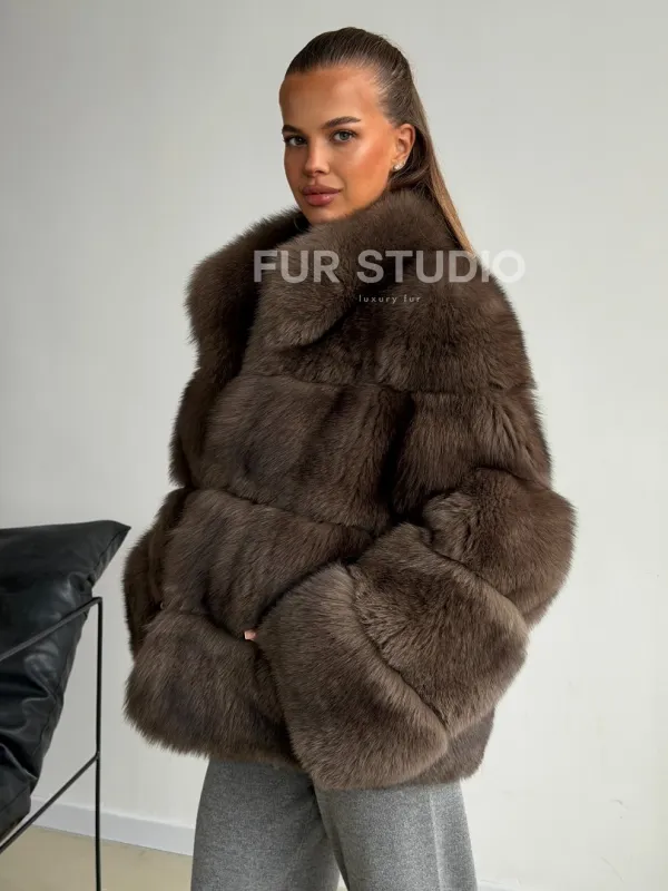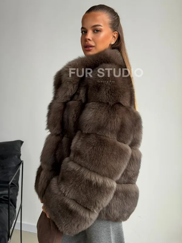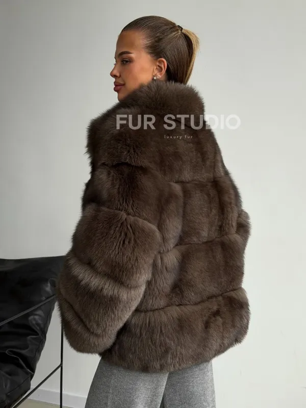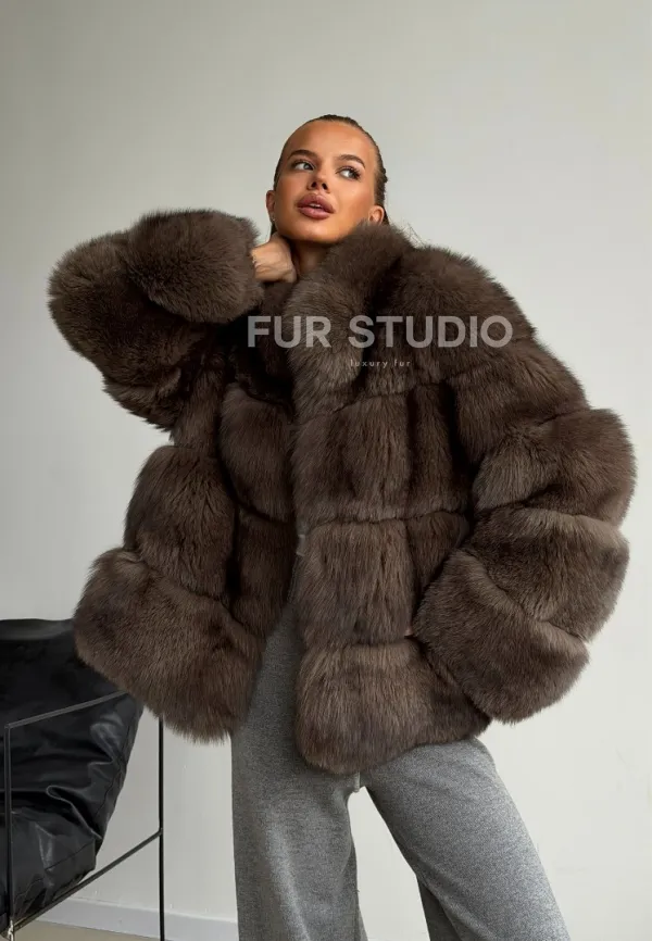 Мех данной шубы финский песец, цвет коричневый. Предлагается в размерах от 42 до 46. Длина модели 60-65 см, что выгодно подчеркивает фигуру девушек. Эта модель идеально подойдет для девушек и женщин, предпочитающих роскошные натуральные меха.